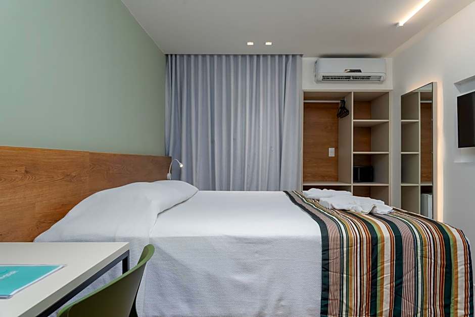 Comfort Triple is 183 square feet and includes either a king-size bed 150-183 width or a single bed 80-130 width plus cable tv and hairdryer.
