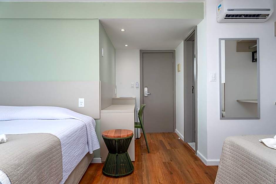 Comfort Quadruple is 226 square feet and includes either a double bed 131-150 width or 2 single beds 80-130 width plus cable tv, hairdryer, and safe.